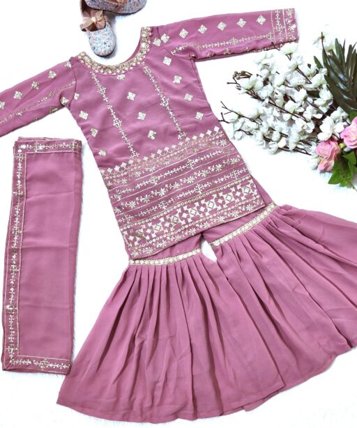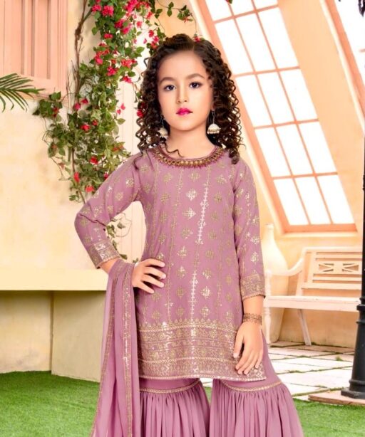 Designer Purple Colors Kids Wear Sharara Salwar kameez