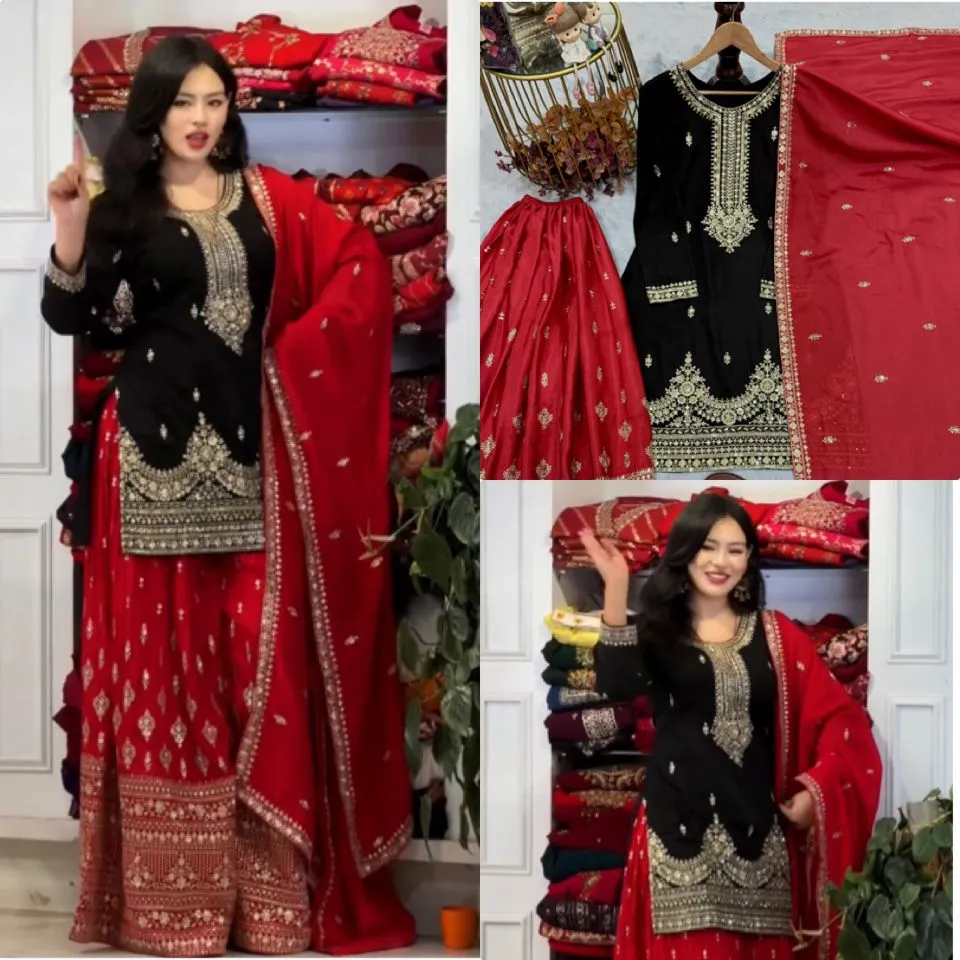 Pure Chinon Silk with Embroidery 5 mm Sequence Work, Inner Micro Cotton, Length 39-40 Inch | |