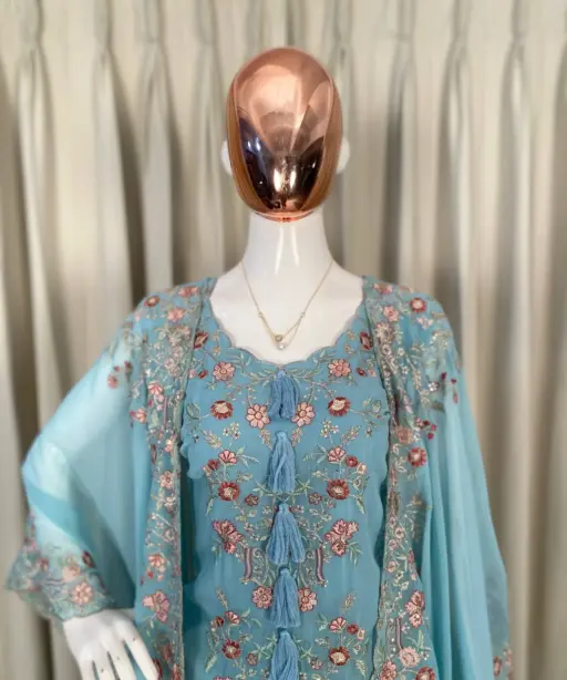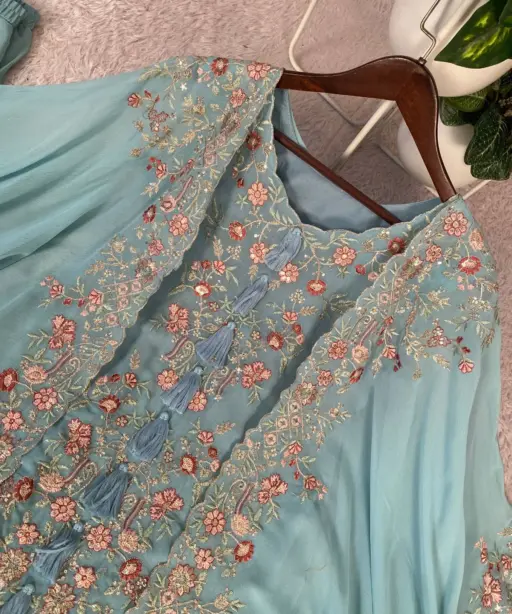 Designer Shrug Style Readymade Dress Blue