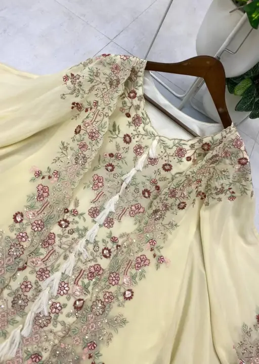 | Dupatta | FAUX GEORGETTE SEQUENCE EMBROIDERY WORK FRONT AND BACK SIDE WITH TUSSLES ON CORNERS |