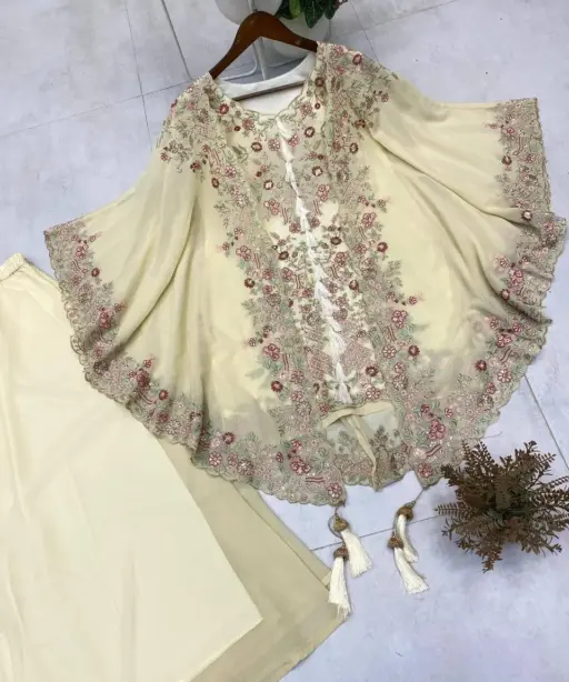 Designer Shrug Style Readymade Dress White