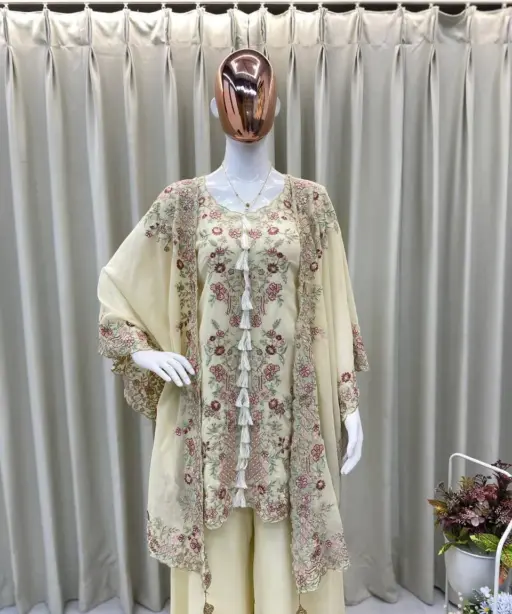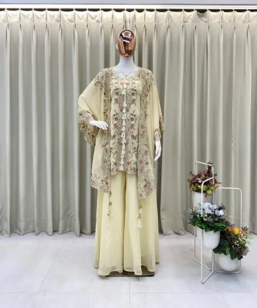 TopFAUX GEORGETTE SEQUENCE EMBROIDERY WORK top 35 Length