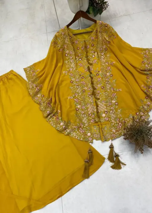 | Dupatta | FAUX GEORGETTE SEQUENCE EMBROIDERY WORK FRONT AND BACK SIDE WITH TUSSLES ON CORNERS |