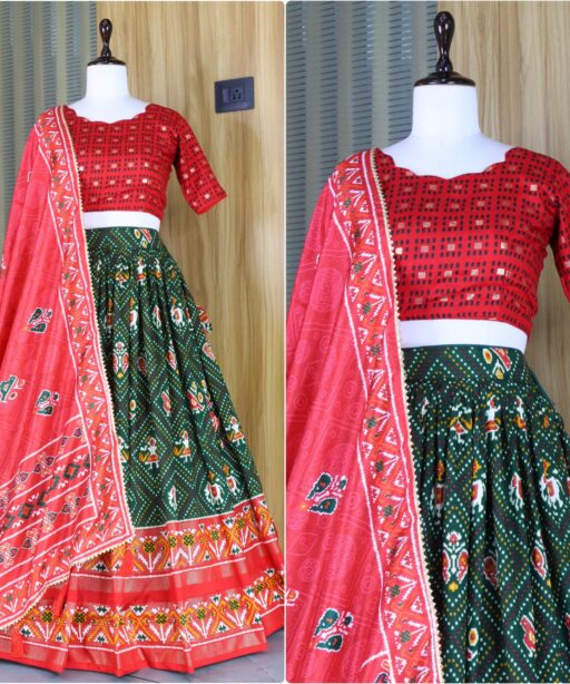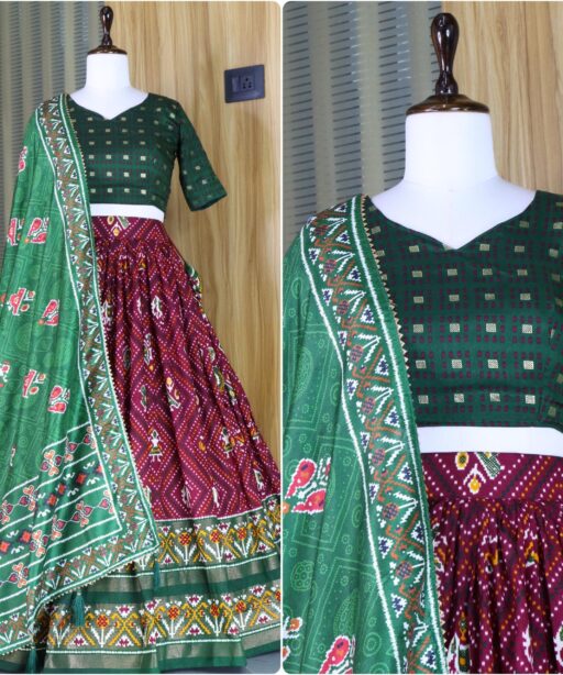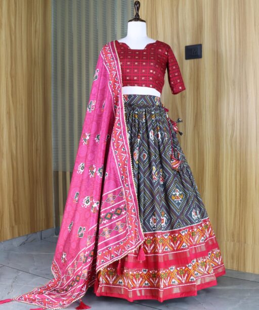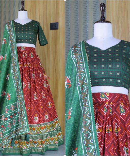Elevate your ethnic wardrobe with our stunning Designer Tusser Silk Lehenga with Bandhani Print, a timeless masterpiece that captures the soul of Indian tradition and the essence of modern sophistication. Crafted with meticulous attention to detail, this lehenga is a celebration of India’s rich textile heritage, making it a perfect choice for weddings, festive events, and traditional gatherings.