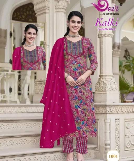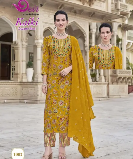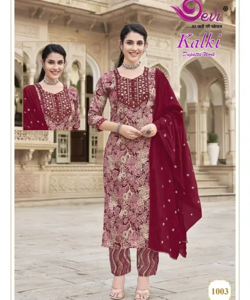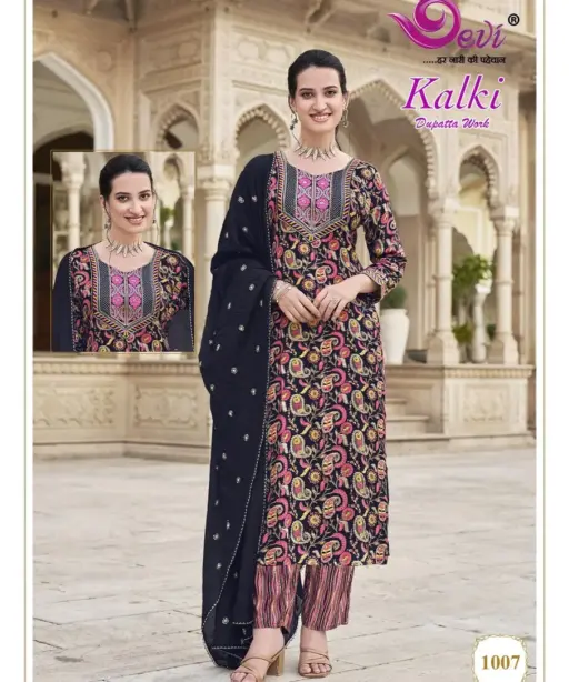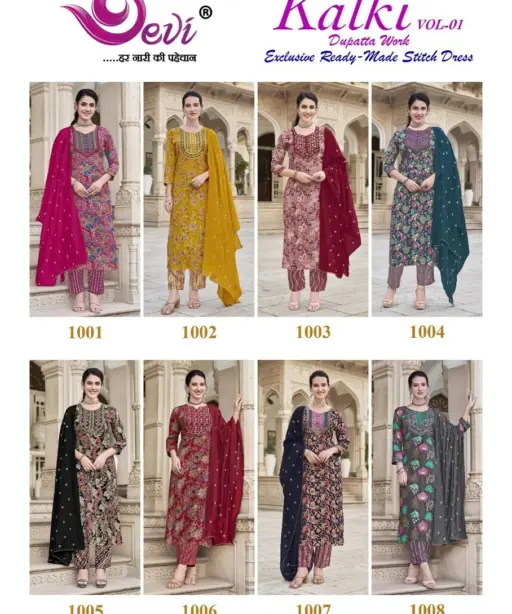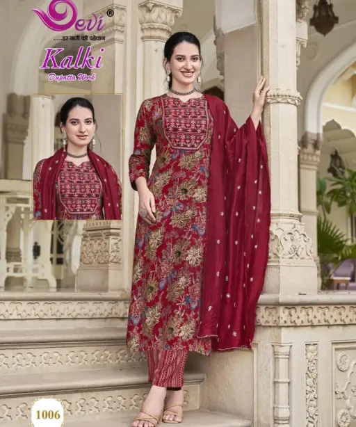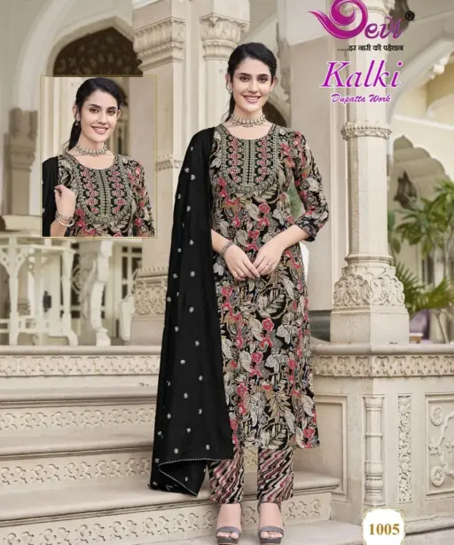 Devi Kalki Vol 1 Rayon Printed Heavy Embroidery Stitched Dress Wholesaler