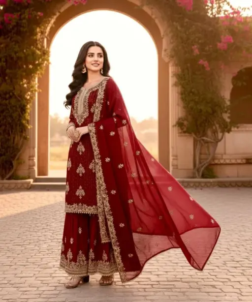 BottomPur Gmy Silk with Heavy Embroidery 5 mm Sequence Work with Elastic 40-41 Inc Length