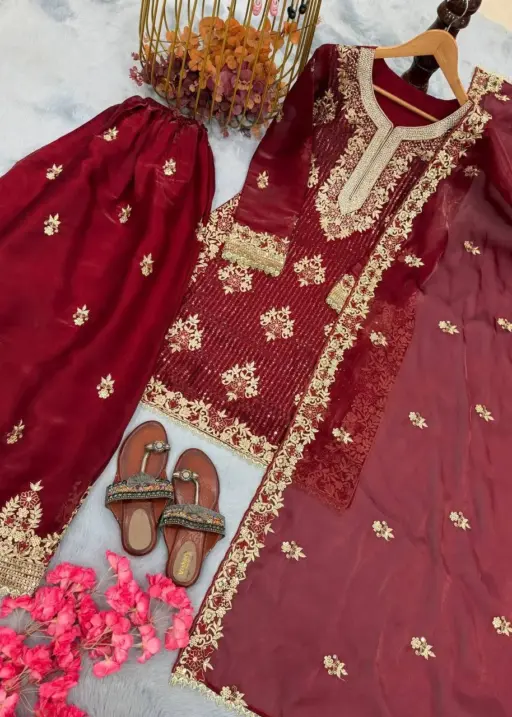 | Dupatta | Pur Gmy Silk with Embroidery 5 mm Sequence Work with Cutwork Length: 2.20 Mtr |