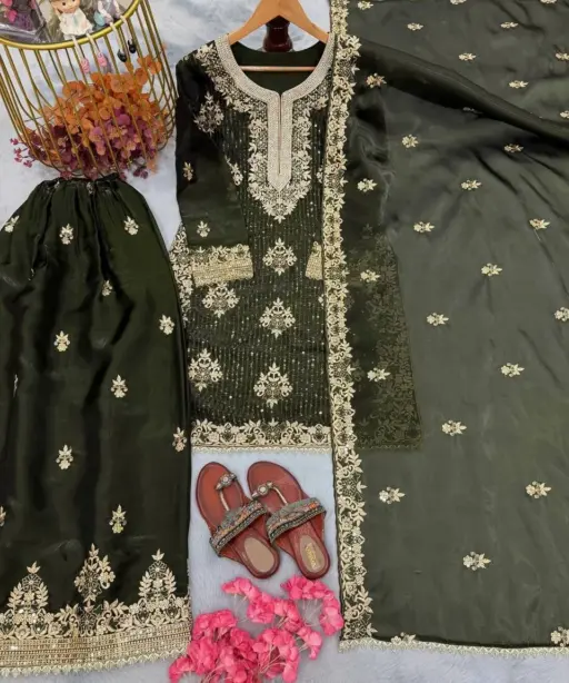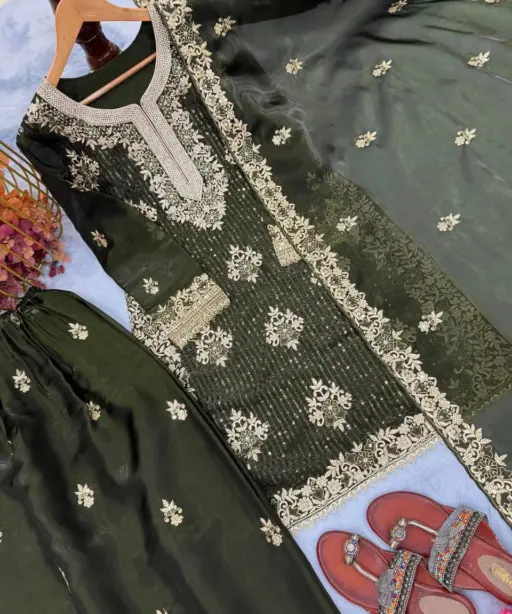 | Dupatta | Pur Gmy Silk with Embroidery 5 mm Sequence Work with Cutwork Length: 2.20 Mtr |