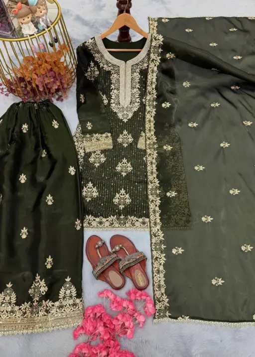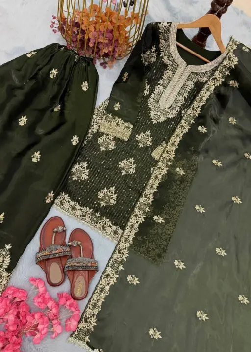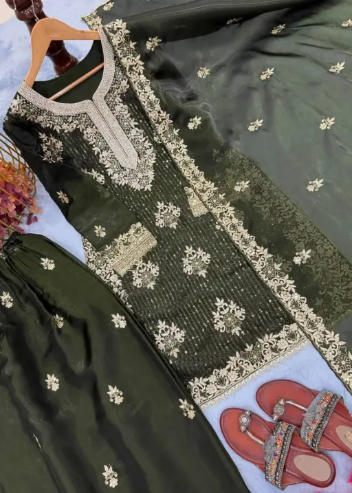 Diamond Work Readymade Pakistani Green Dress