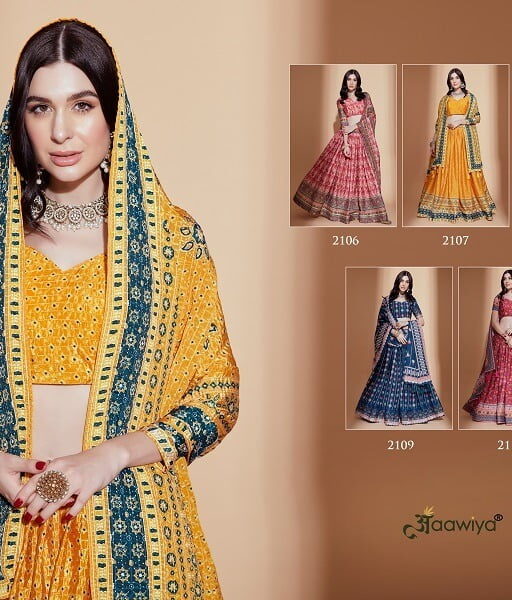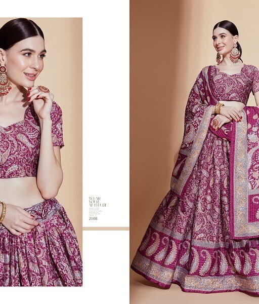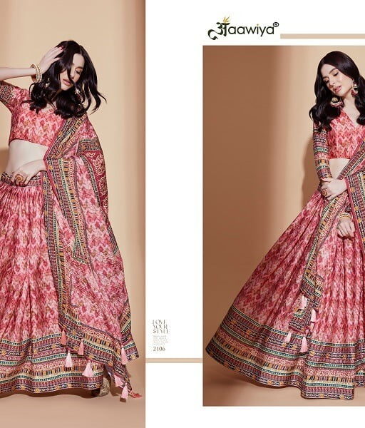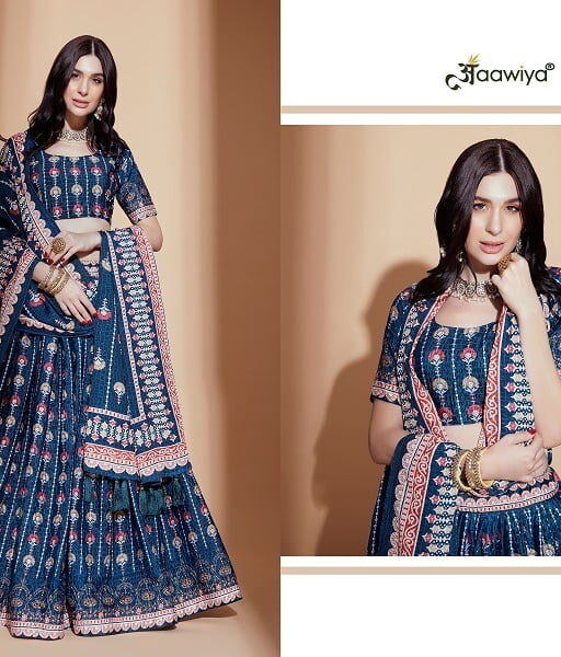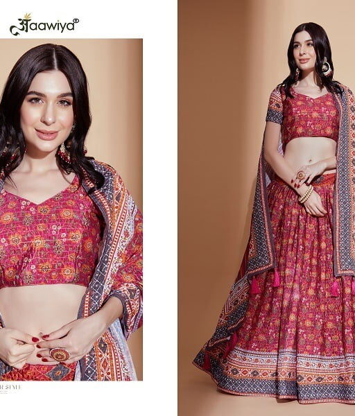 | Lehenga | Chinon with Crochet Embroidered & Digital Print Work, 4-meter flair, Inner: Art Silk with 19’’ Can-Can Layered Net & Canvas |