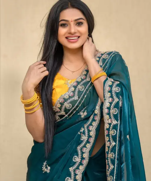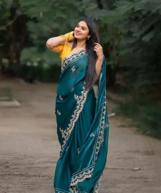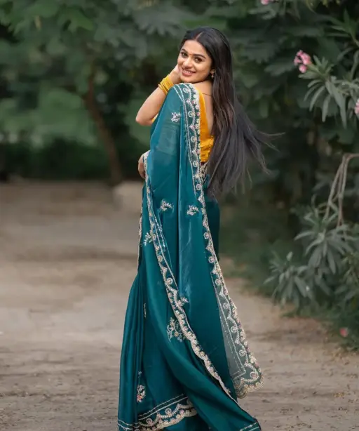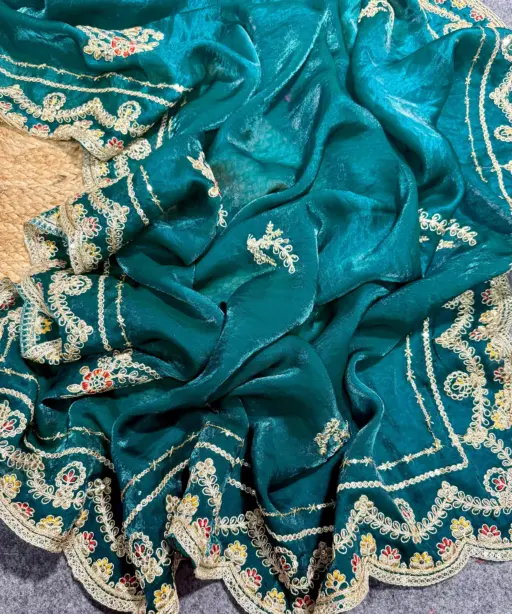 | Saree | Fendy Satin with Coding Sequin & Thread Work, Crafted Arca Border All Over |