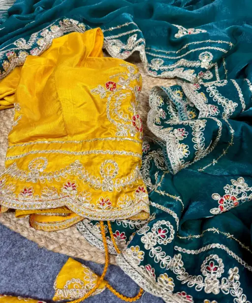 | Blouse | Yellow Malai Silk (Unstitched) with Intricate Embroidery |