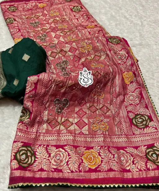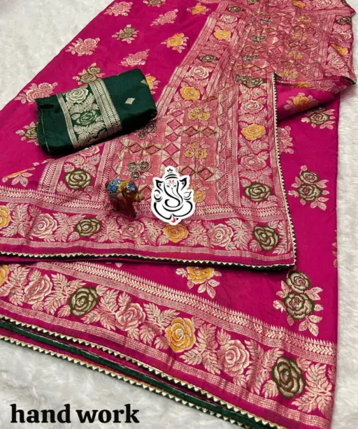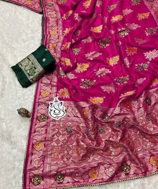 | Work | Heavy Meenakari Zari Weaving with Handwork |