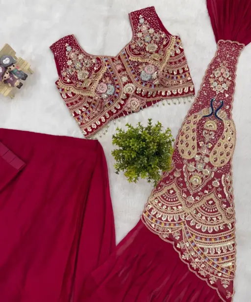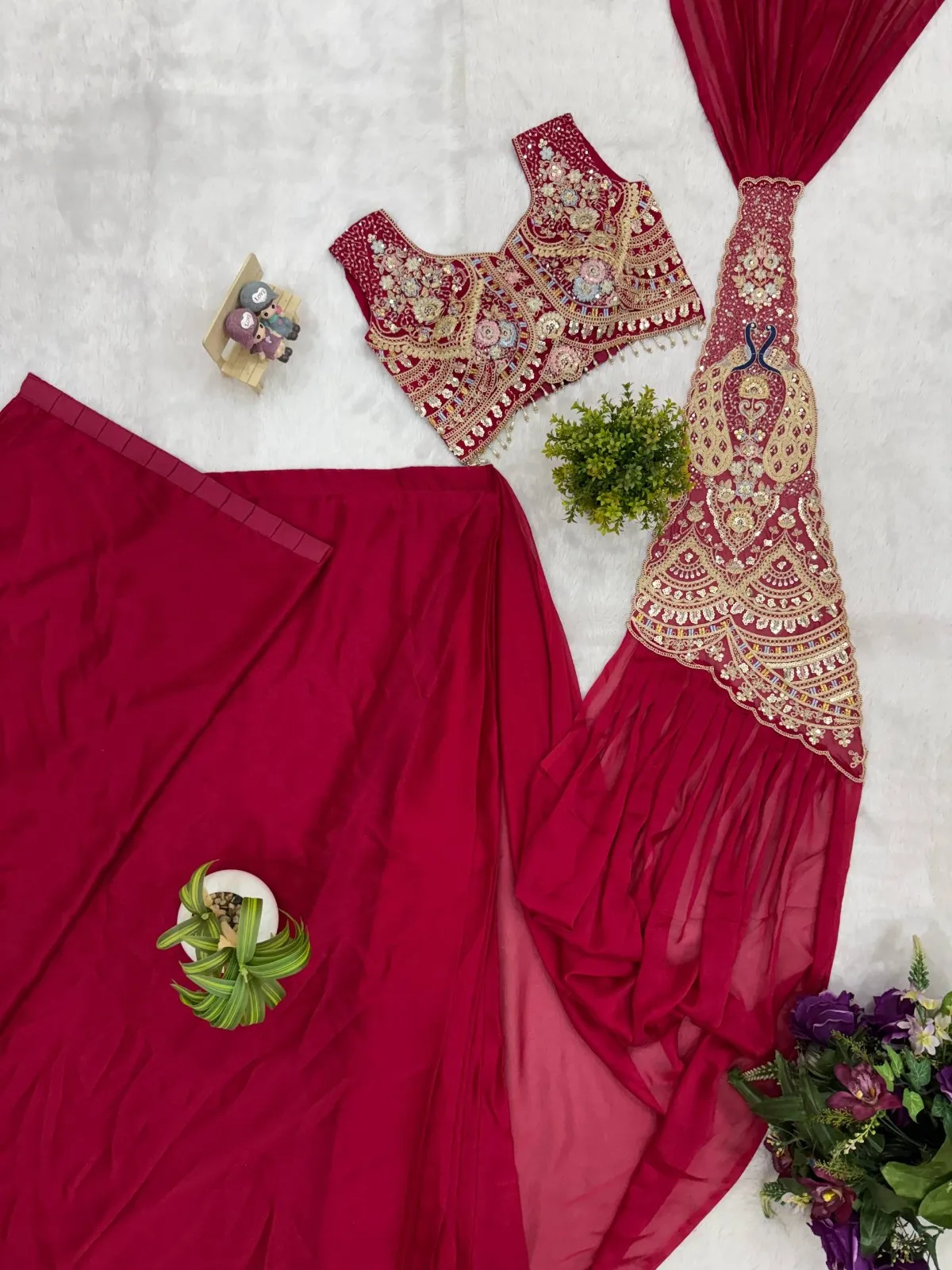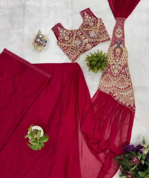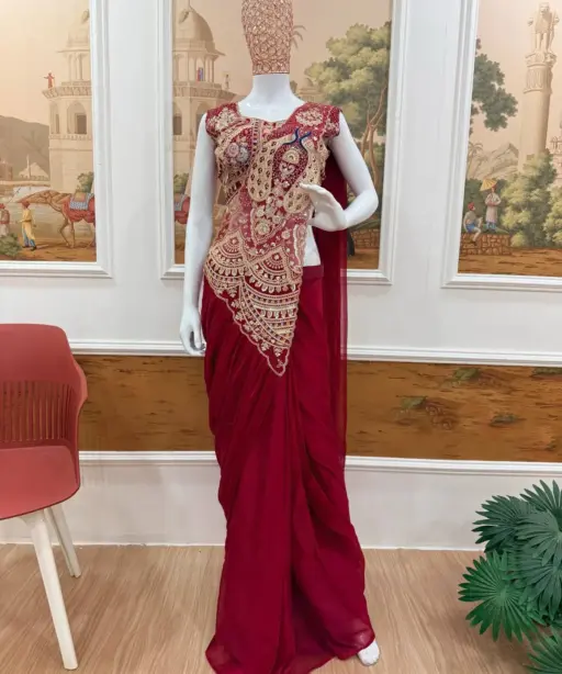 Catalog Name: Double Peacock Pallu Readymade Saree Red Color