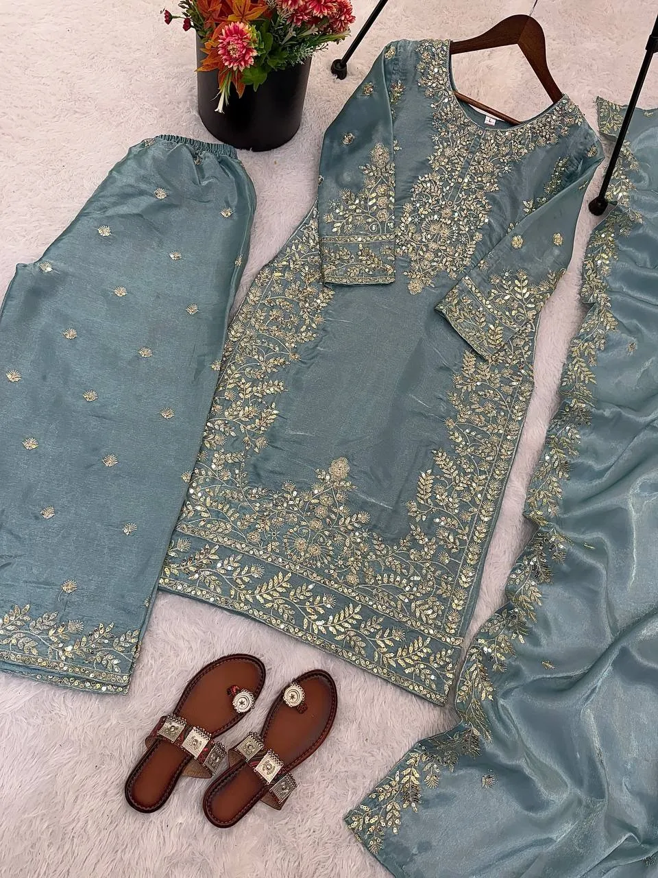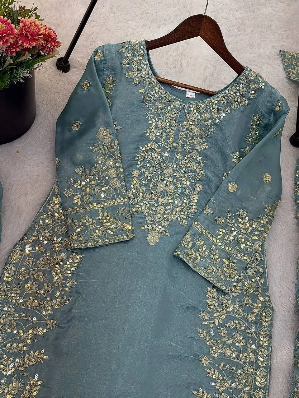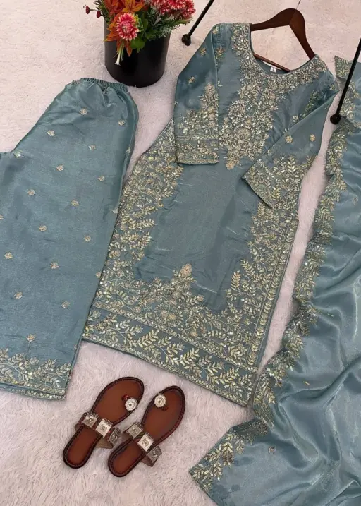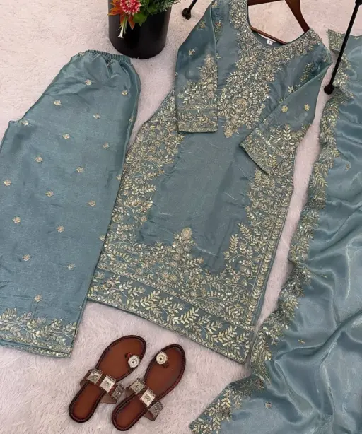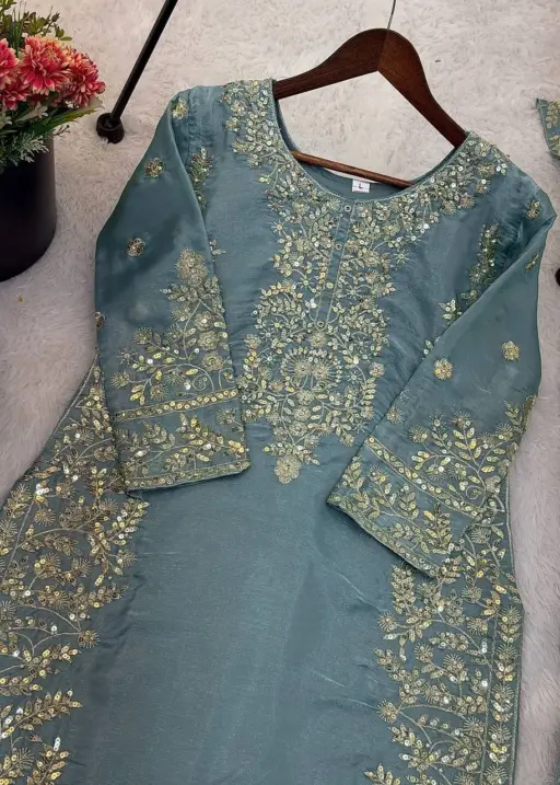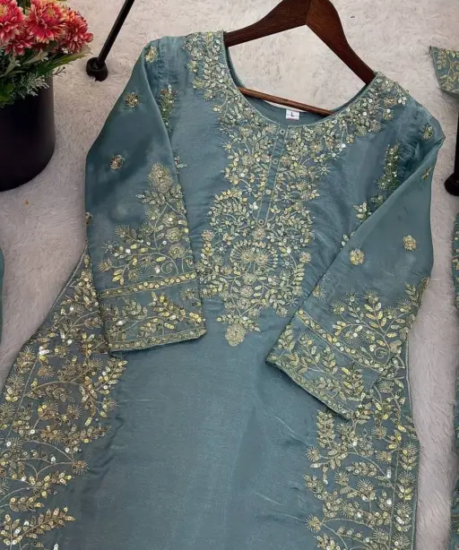 | Top | Pure GMY SILK With Heavy Embroidery Sequence Work with Full Sleeve top 39-40 Length |