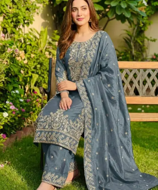 Eid Festival Pakistani Readymade Gray Dress