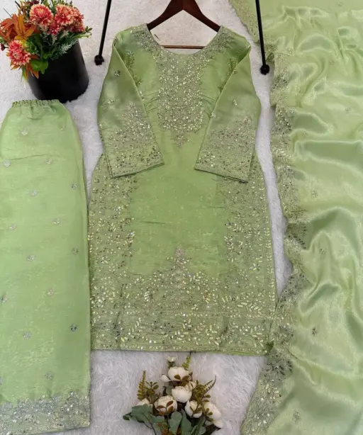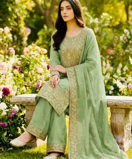 BottomGMY SILK With Embroidery Sequence Work with Elastic 40-41 Inch Length