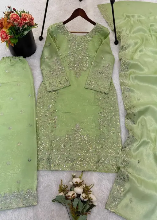 | Top | Pure GMY SILK With Heavy Embroidery Sequence Work with Full Sleeve top 39-40 Length |