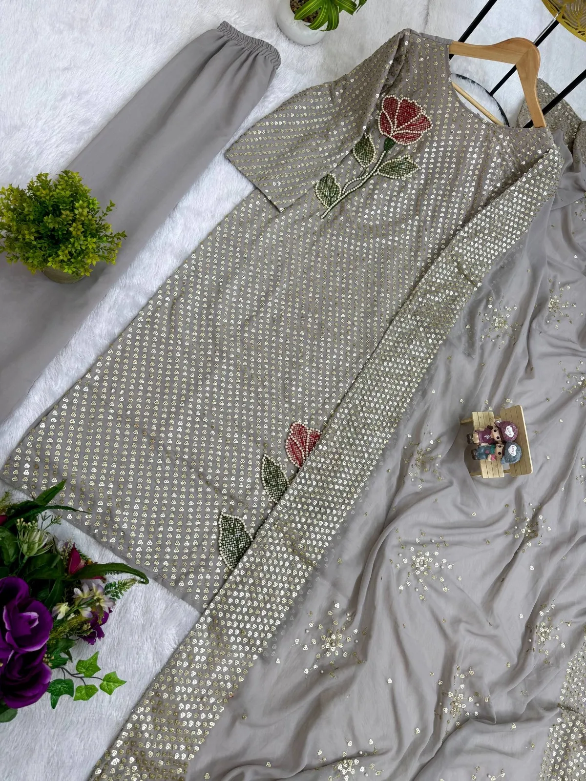 DupattaFAUX GEORGETTE DUAL SEQUINS HEAVY EMBROIDERY & PEARL MOTI WORK / 2.20 METER