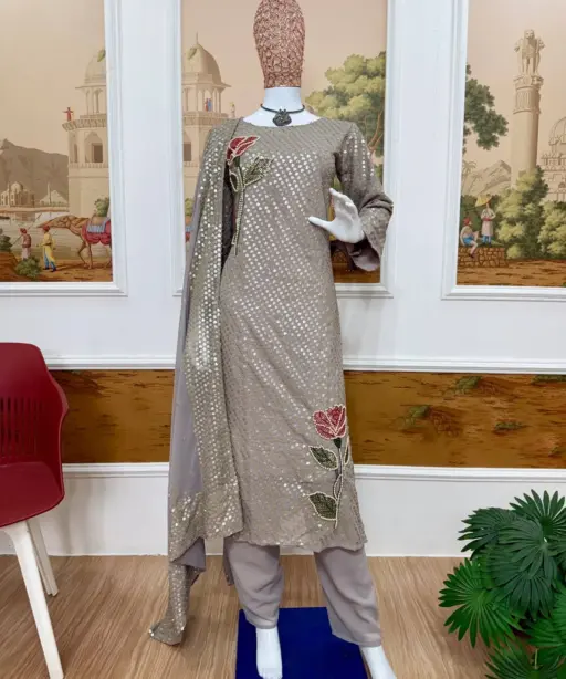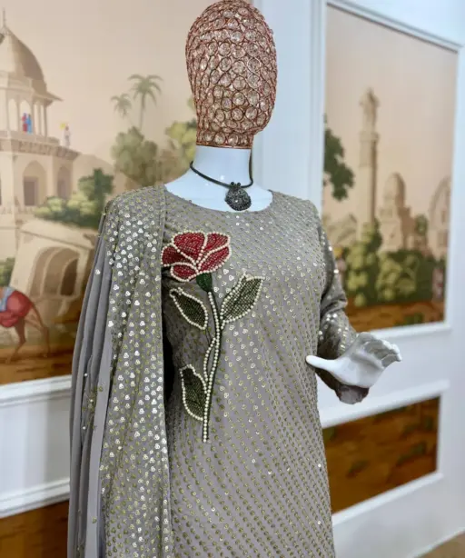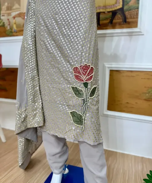 TopFAUX GEORGETTE DUAL SEQUINS HEAVY EMBROIDERY & PEARL MOTI WORK Sleeve Length 18 Inch top 48 Length