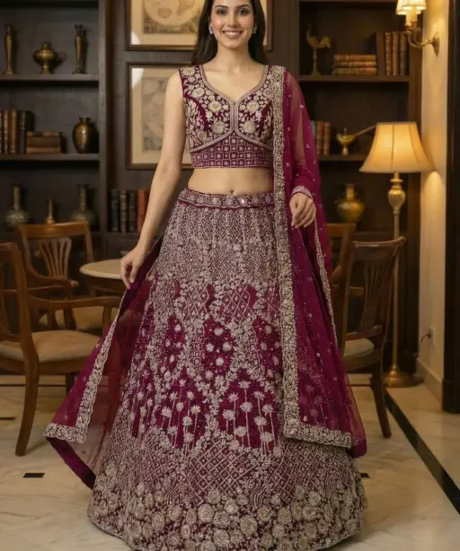 | Lehenga | Double Net Crafted Double Net Crafted Dori Embroidery Multi thread work Sequence work |