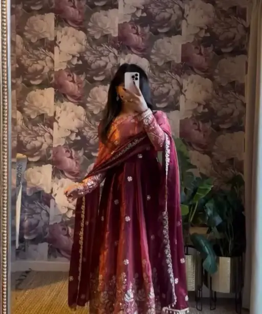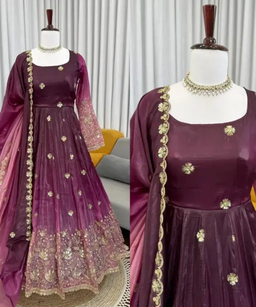 | Dupatta | Chinon silk thread with Sequence with 4-Side work Border Length: 2.2 meters |