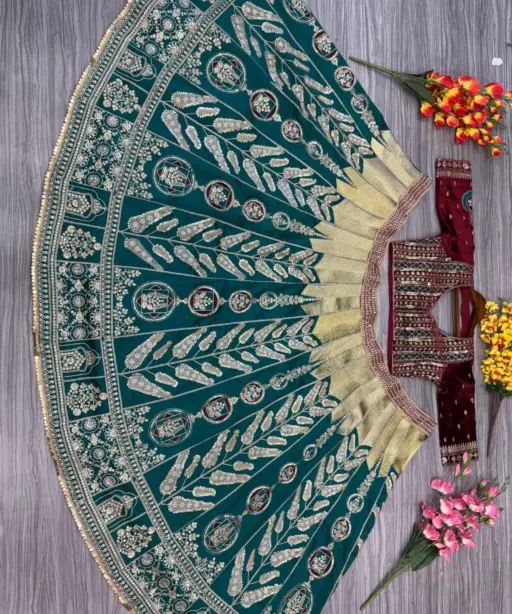 Embellished Green Bollywood Silk Lehenga Choli With Heavy Embroidery And Sequince Work