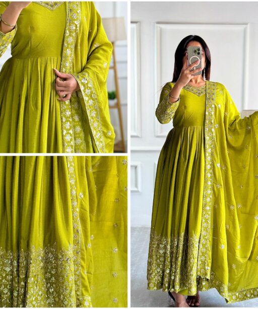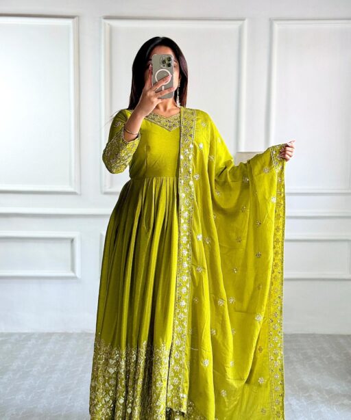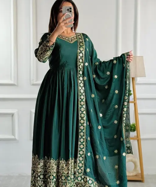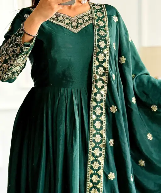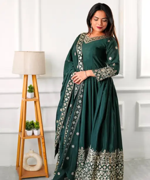 Embellished Green Color Trending Anarkali Gown With Heavy Embroidery Sequence Work