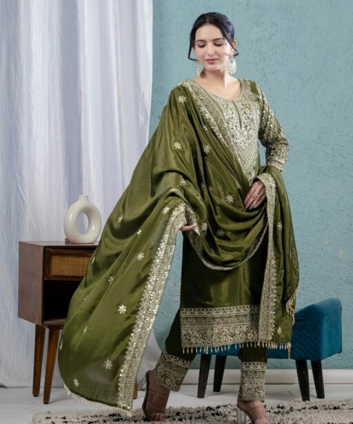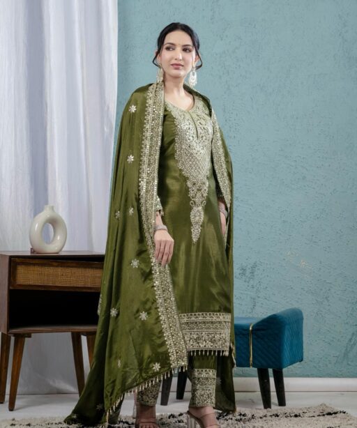 | Top | Pure Heavy Chinnon Silk With Heavy Embroidery Coding Sequence Work With Full Embroidery Sleeve |