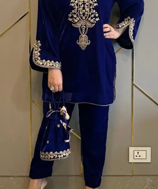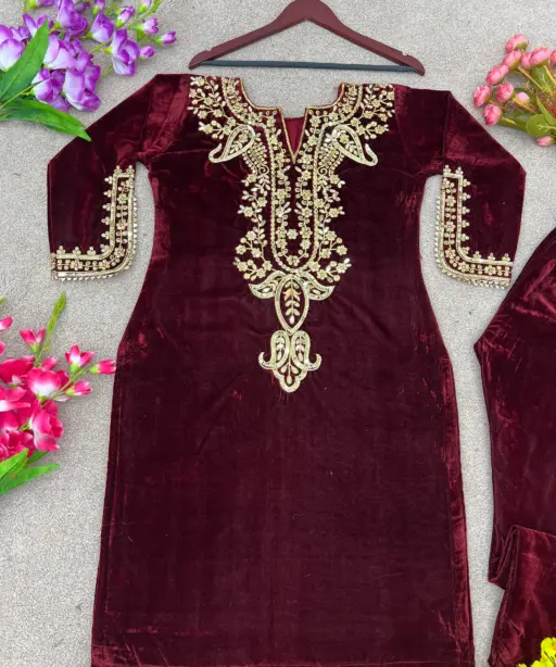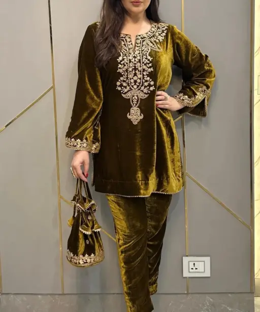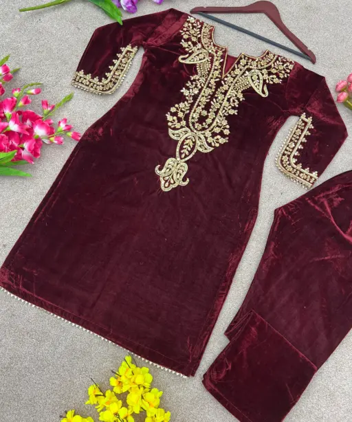 Embroidered Velvet Co ord Set Trending