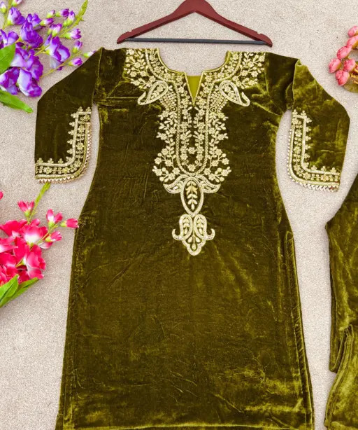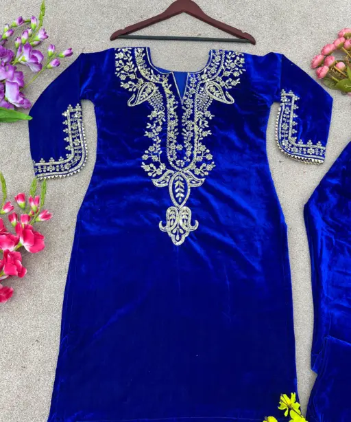 | Top | Heavy Viscose Velvet with Heavy Embroidery Work and Full Sleeves |