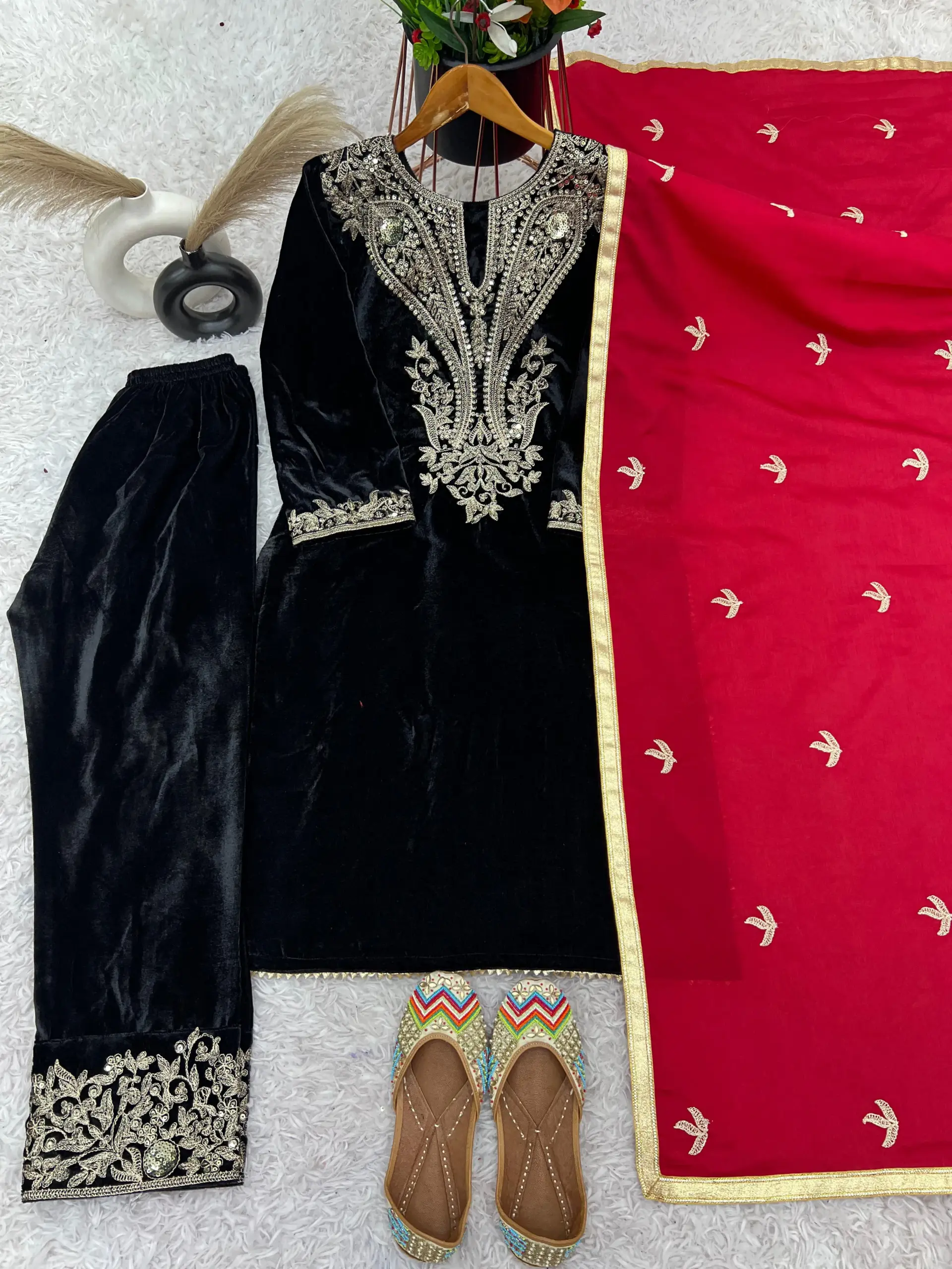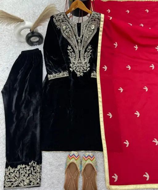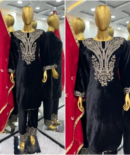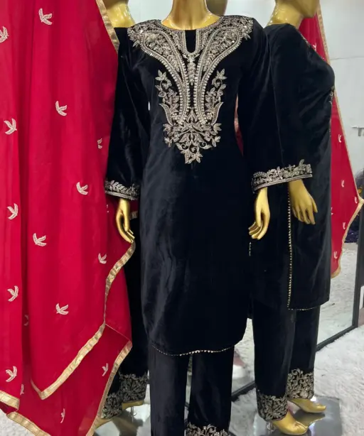 | Bottom | Viscose Velvet with Embroidery Sequence Work (Fully Stitched) |