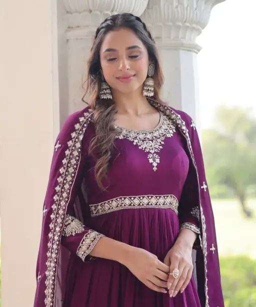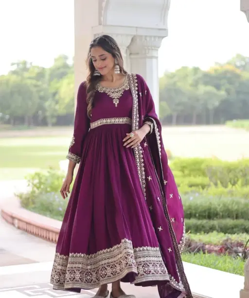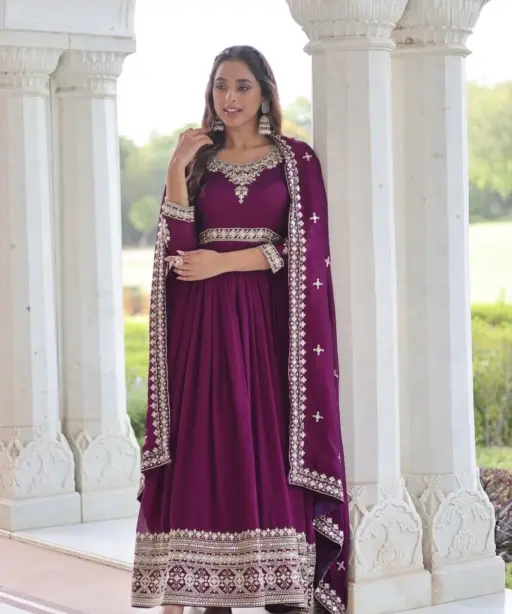 Ethnic Suit Wine Anarkali Dress for Women