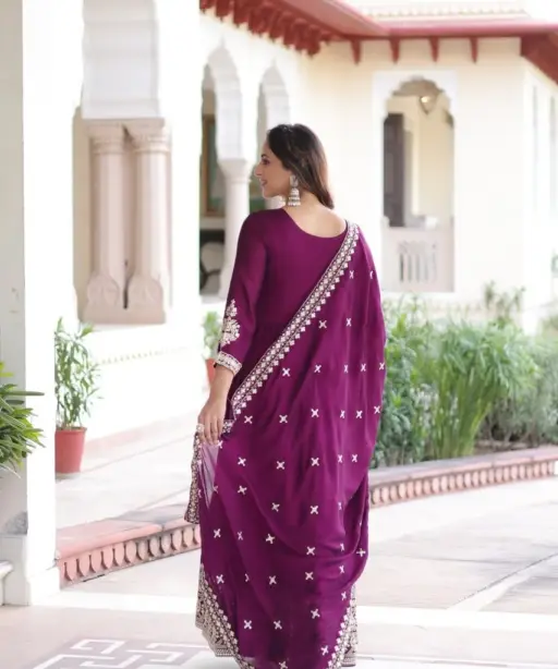 | Top | Vichitra Silk with Rich Sequins Embroidered work LENGTH: 56 INCH, FLAIR: 3 MTR |