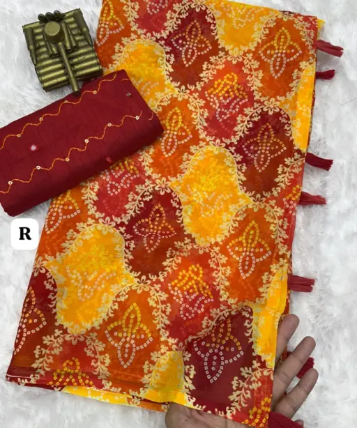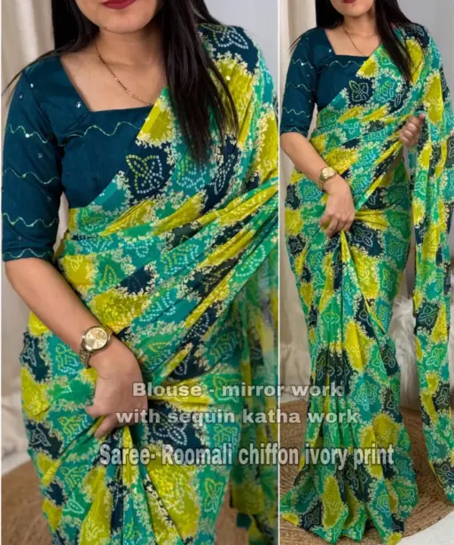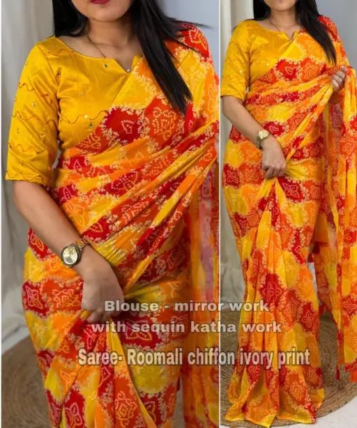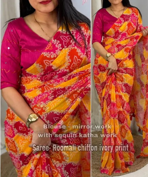 | Saree | Roomali Chiffon with Bandhani Print |