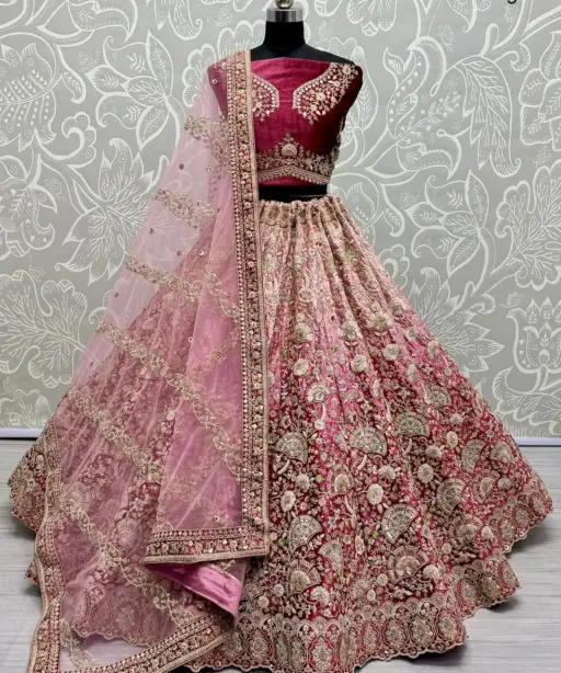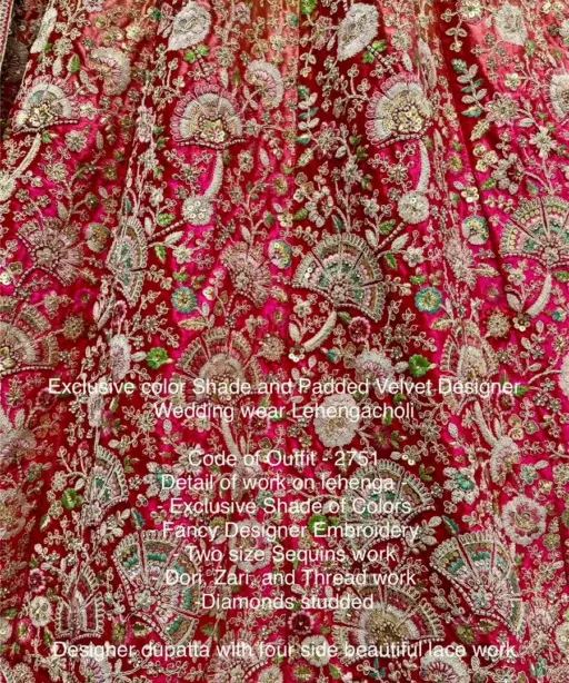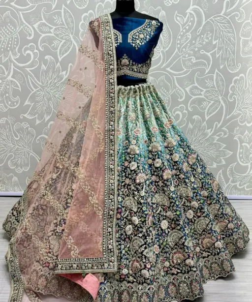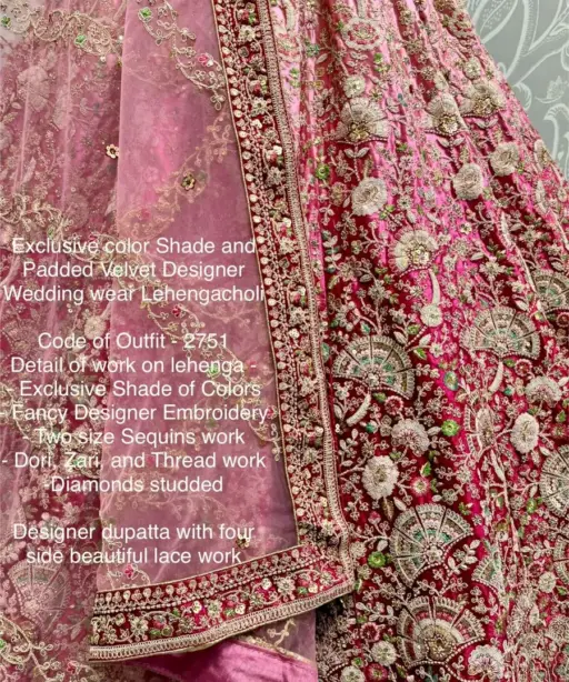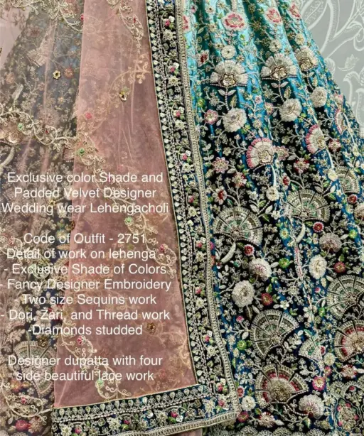 Exclusive color Shade and Padded Velvet Designer Wedding wear Lehenga Choli