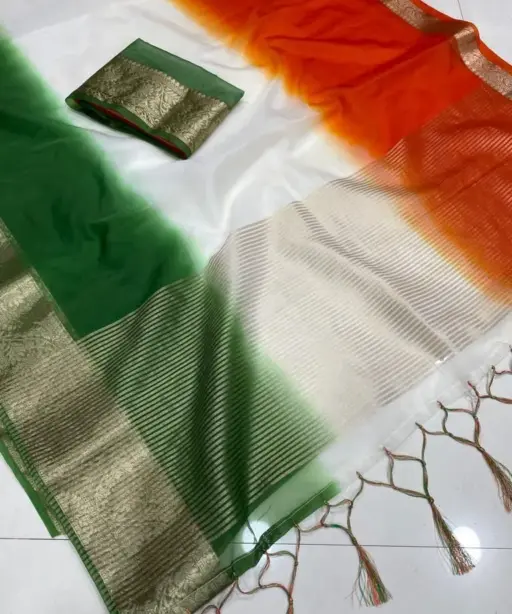 Exclusive Tiranga Indian Flag Printed Saree For Republic Day Calibration Saree Solid Kora Organza Saree