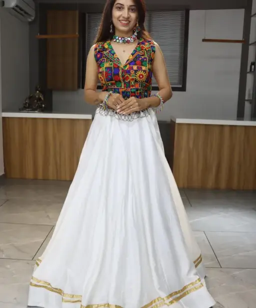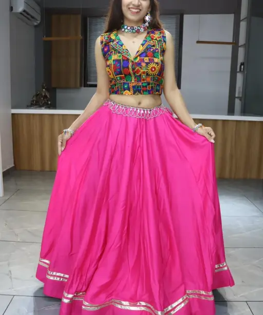 Fancy Blouse And Plain Navratri Chaniya Choli