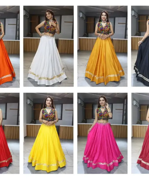 | Lehenga | Pure Rayon Cotton, Plain with Gota Patti and Kali, Flair: 6 Meter, Length: 41, Waist: Supported up to 44 Inch, Inner: Micro Cotton, Closure: Drawstring and Zip, Stitched with Canvas |