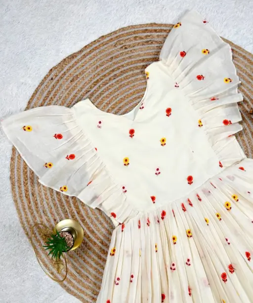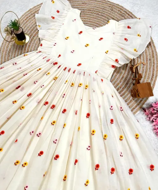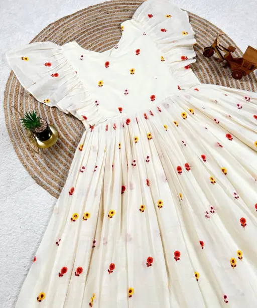 | Top | Pure Cora Cotton with Embroidery Thread Work (Fully Stitched Gown, Length 48″, Shoulder 15″, Flair 3.2 Mtr) |