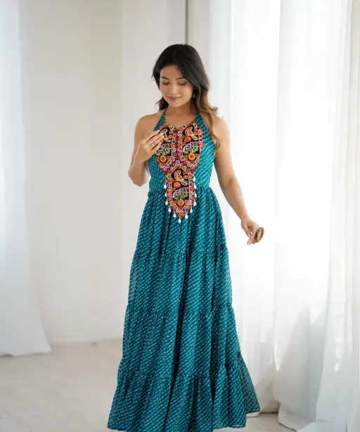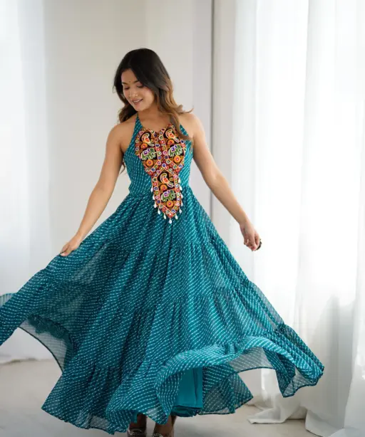 Fancy Deep Neck Navratri Gown