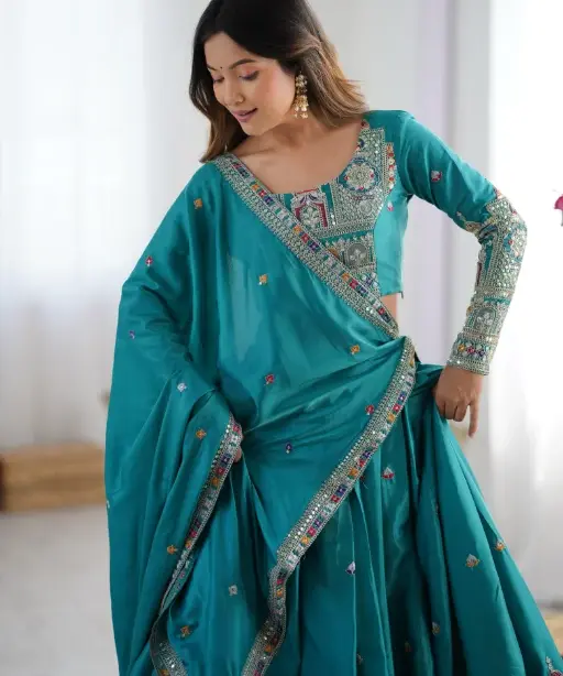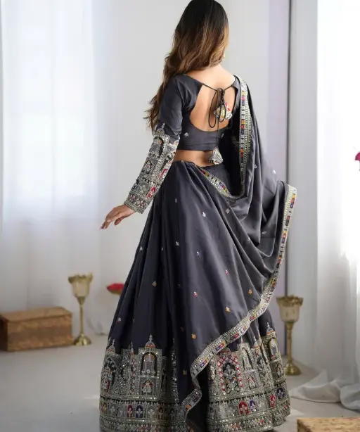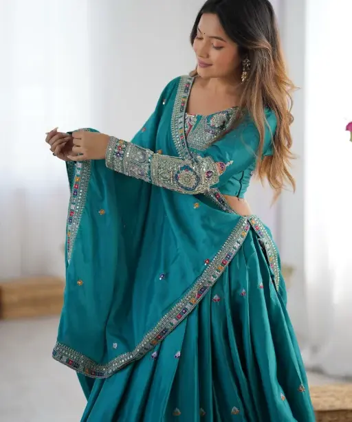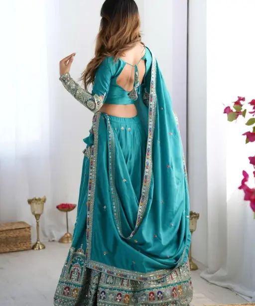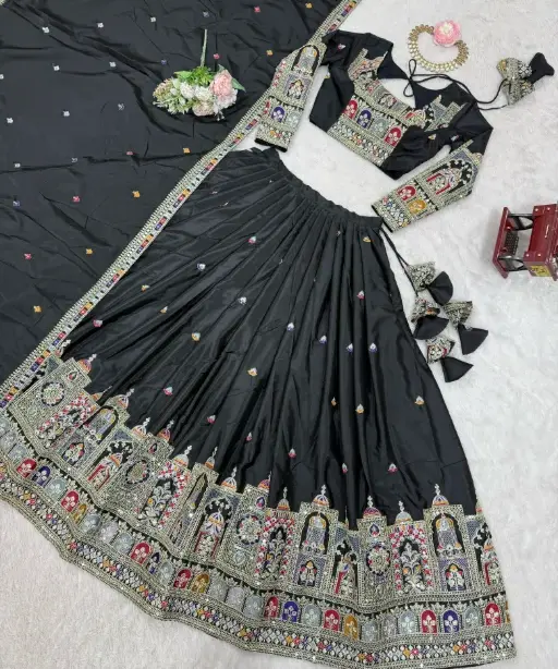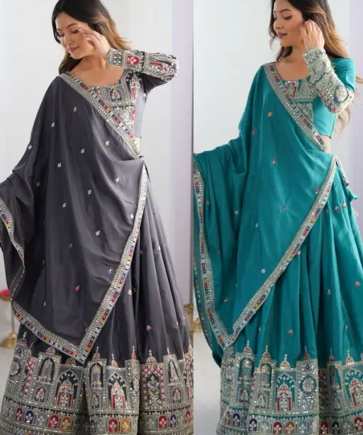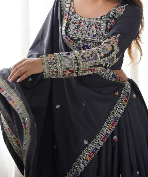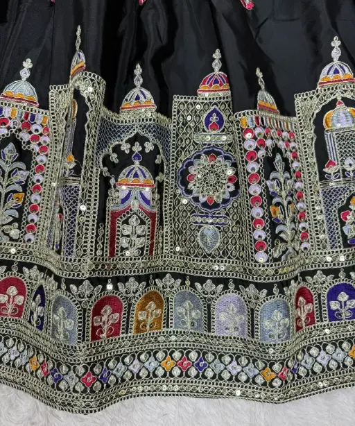 Whether you’re the bride looking for a standout lehenga or a fashion-forward guest attending a grand Indian wedding, this fancy multicolor lehenga is designed to make you shine. The colorful embroidery gives it a vibrant yet sophisticated appearance, perfect for both daytime functions and evening ceremonies.