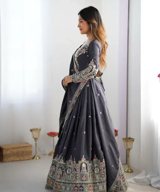 Fabric: Premium silk, net, velvet, or georgette base with soft lining for comfort