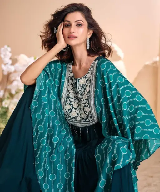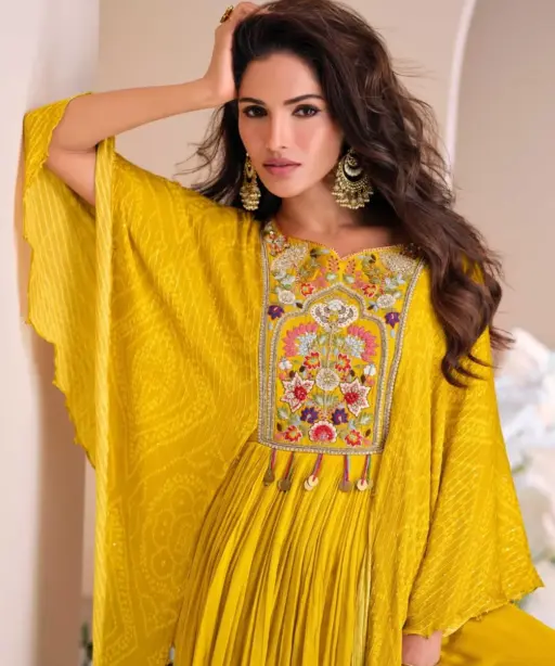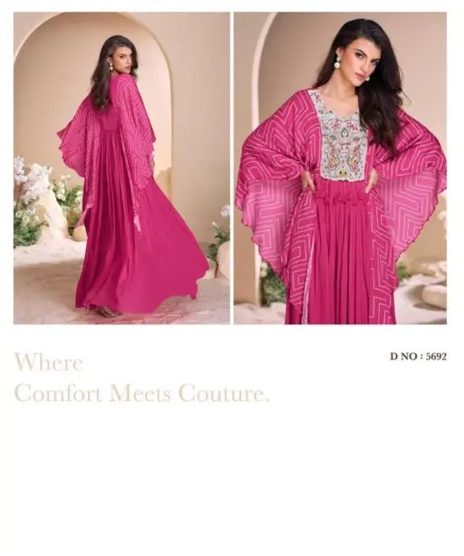 | Gown | Premium Real Chinon Silk with heavy hand moti embroidery and digital sleeves |