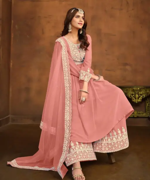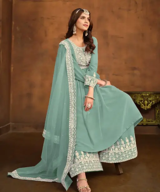 Faux Georgette With White Embroidery Wedding Wear Ethnic Salwar Suit