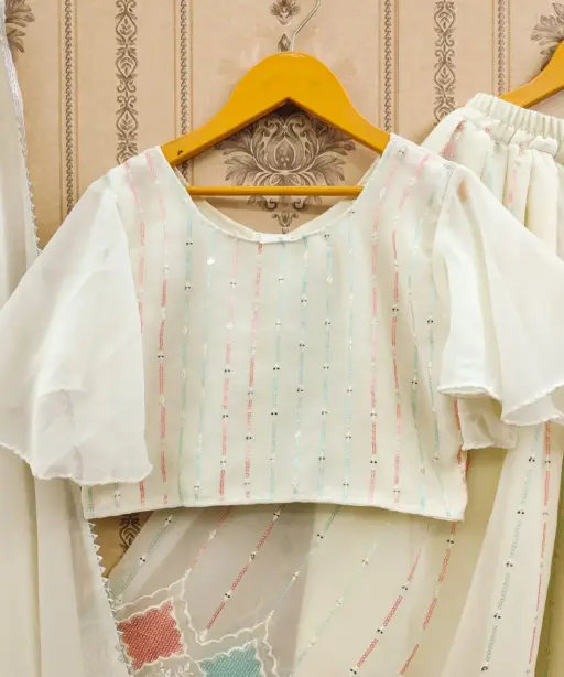 | Choli | Blooming Georgette Blouse with 3-Colour Sequins Embroidered Work & Cut-Work, Inner Micro Cotton |