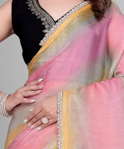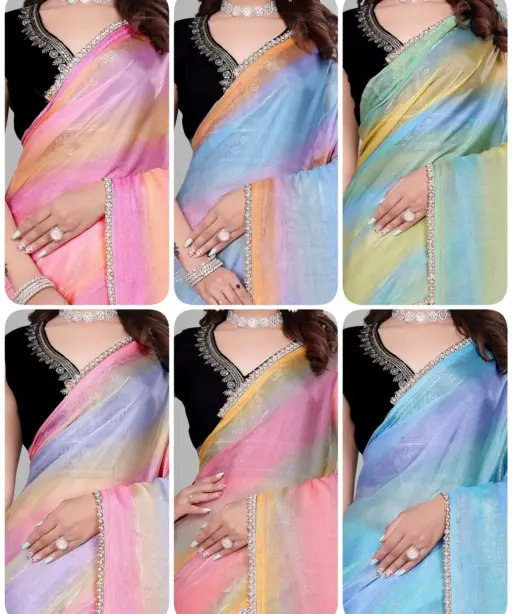 | Saree | Vichitra Silk with Allover Beautiful Valmoti Border Work & Fancy Valmoti Lace (Available in 6 Colors) |