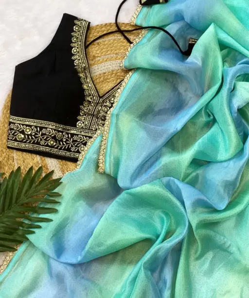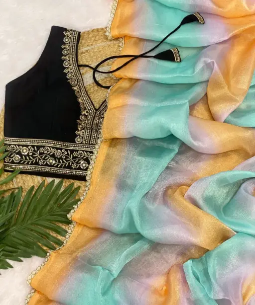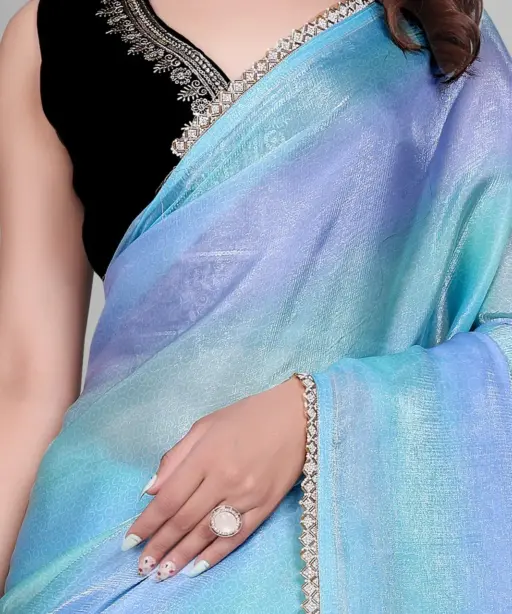 | Blouse | Vichitra Silk with Valmoti Work, Full Stitched |