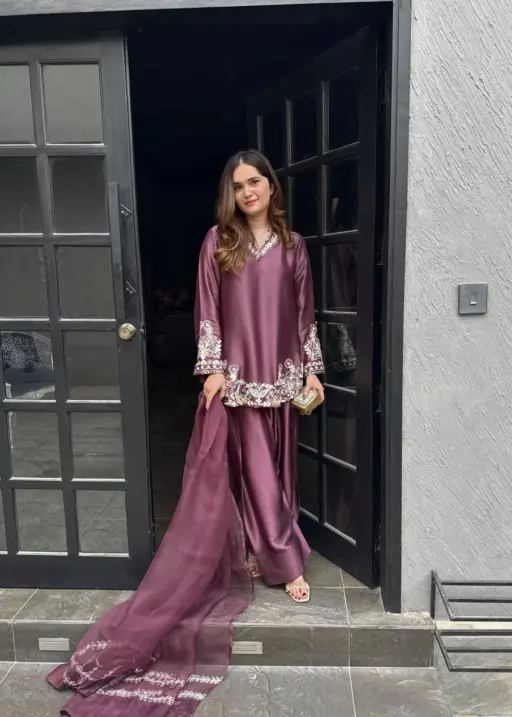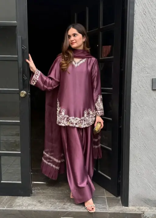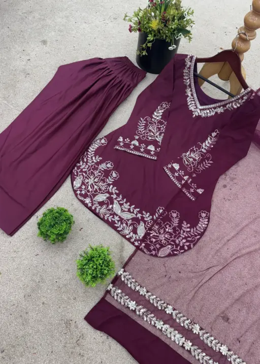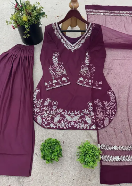 | Top | Pure Natural Crepe Silk with Embroidery Sequence Work, Full Sleeve, Length 39-40 Inch, Inner Heavy Micro Cotton, Fully Stitched Ready to Wear |