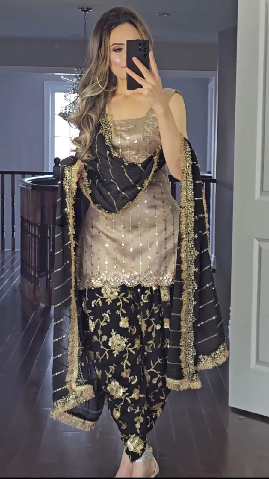 Bottom | Faux Georgette Dhoti Salwar with Embroidery 5mm Sequence Work, Inner: Micro Cotton, Length 41-42 Inches |